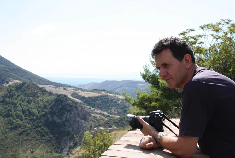 Mario Greco è nato nel 1954 a Castagna di Carlopoli, un centro della Sila Piccola Catanzarese. Nei primi anni ’70 studia a Catanzaro e in quel periodo scopre la magia della fotografia; da una particolare scatoletta si riusciva a raccontare il mondo, innanzitutto il suo, fatto di uomini e donne che a malapena tiravano la giornata. Mario in quegli anni ha archiviato nella sua mente e nel suo cuore, immagini, situazioni e suoni. Ma un ragazzo di 20 anni ha bisogno anche di evadere dal suo paese; l’occasione è la frequenza di un corso di fotografia a Torino. Raccoglie le sue poche cose da mettere in valigia e parte verso la conquista della città sabauda; là troverà una folta comunità di calabresi che lavorano nelle grandi fabbriche, cercando di mettere definitivamente dietro le proprie spalle le varie situazioni di miseria e di sottosviluppo che si vivevano in quell’epoca nei paesi montani del sud.